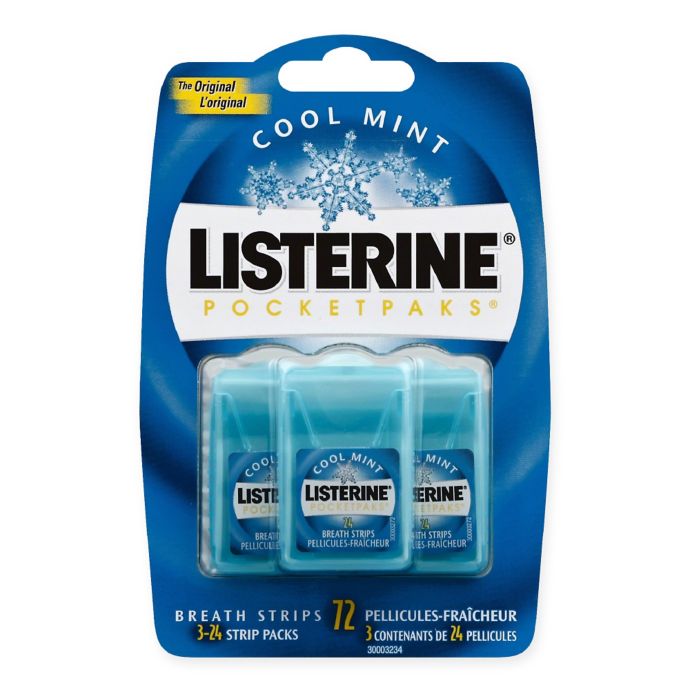 Listerine cool mint pocketpaks breath strips 12 pk 24 ct. Listerine pocketpacks breath strips 24 ct 12 pk are your first line of defense in the battle against embarrassing bad breath. They have a fresh taste accompanied by germ killing power that leaves your breath fresh and you with more confidence. Refresh your mouth with listerine cool mint pocketpaks breath strips 72 strip pack. Listerine cool heat pocketpaks breath strips for oral care kills bad breath germs to freshen breath cinnamon flavor 24 strip pack 3 pack pack of 6 4 8 out of 5 stars 87 26 83.